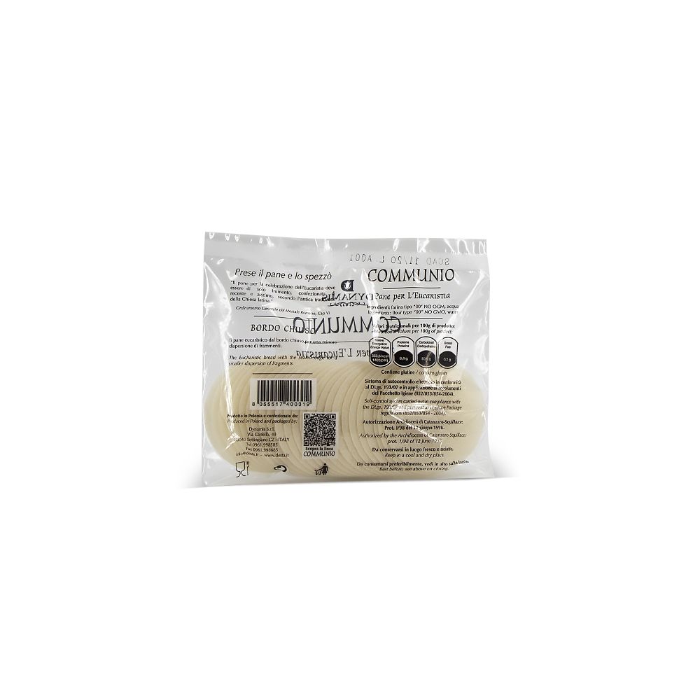 El Pan Eucarístico COMMUNIO, con borde cerrado para permitir una menor dispersión de fragmentos, , se elabora únicamente con harina seleccionada de tipo «00» (NO OGM) y agua, respetando plenamente las normativas vigentes en materia de elaboración de productos alimenticios y las normativas higiénico-sanitarias, siguiendo siempre rigurosamente los dictados del Código de Derecho Canónico, con el fin de ofrecer a los consumidores una garantía de calidad, autenticidad y tradición clerical.