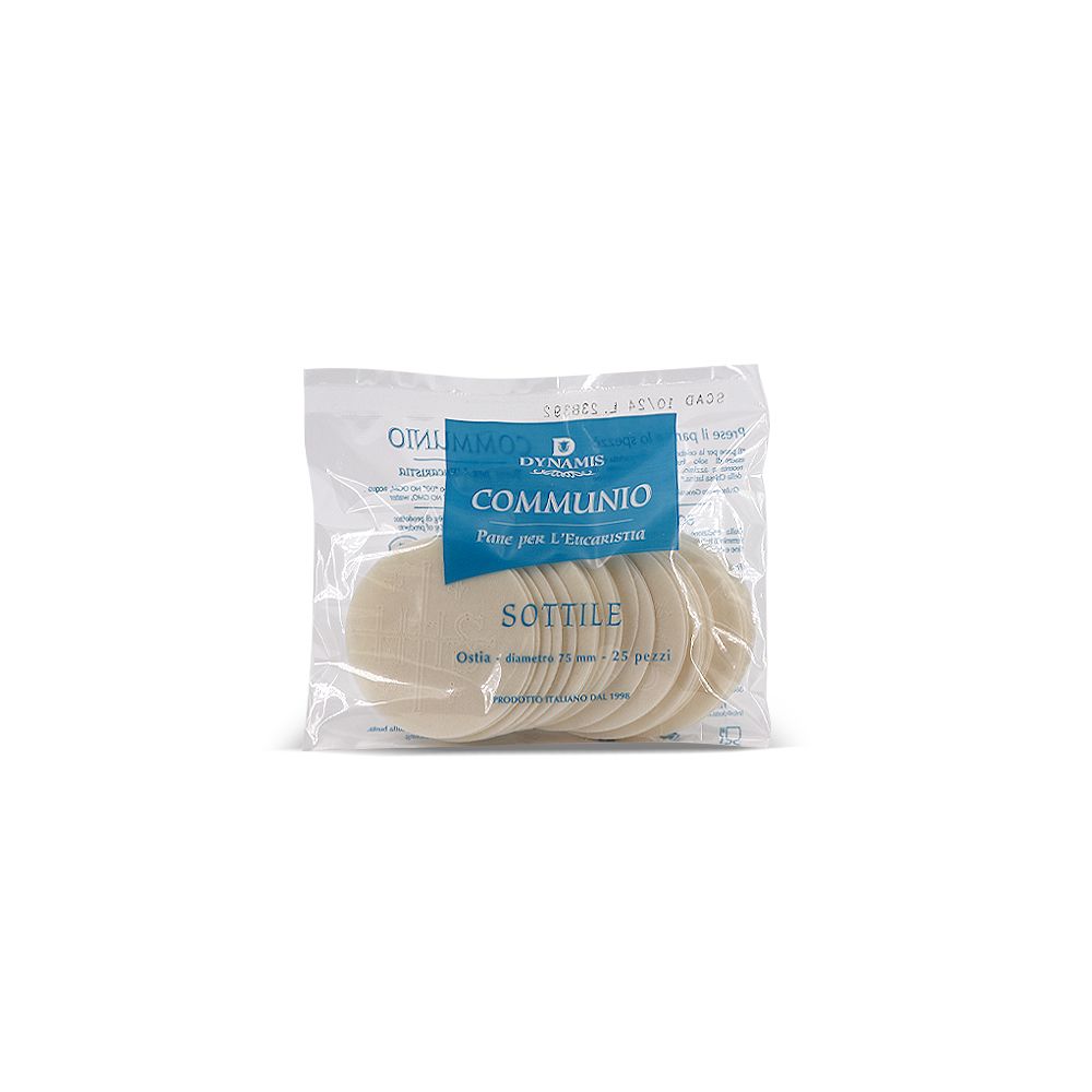 Busta sigillata contenente 25 ostie da 75 mm di diametro e 1 mm di spessore.